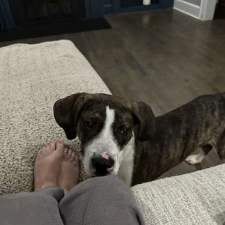 Charlie is a very friendly boxer mix that found himself on the streets abandoned. He is being fostered in a home with 4 other dogs and small children. Charlie gets along with everyone and and in his mind never meets a stranger. He goes outside to potty and enjoys spending close time with his fosters. He would love to find someone that will give him a chance to become their new family member.